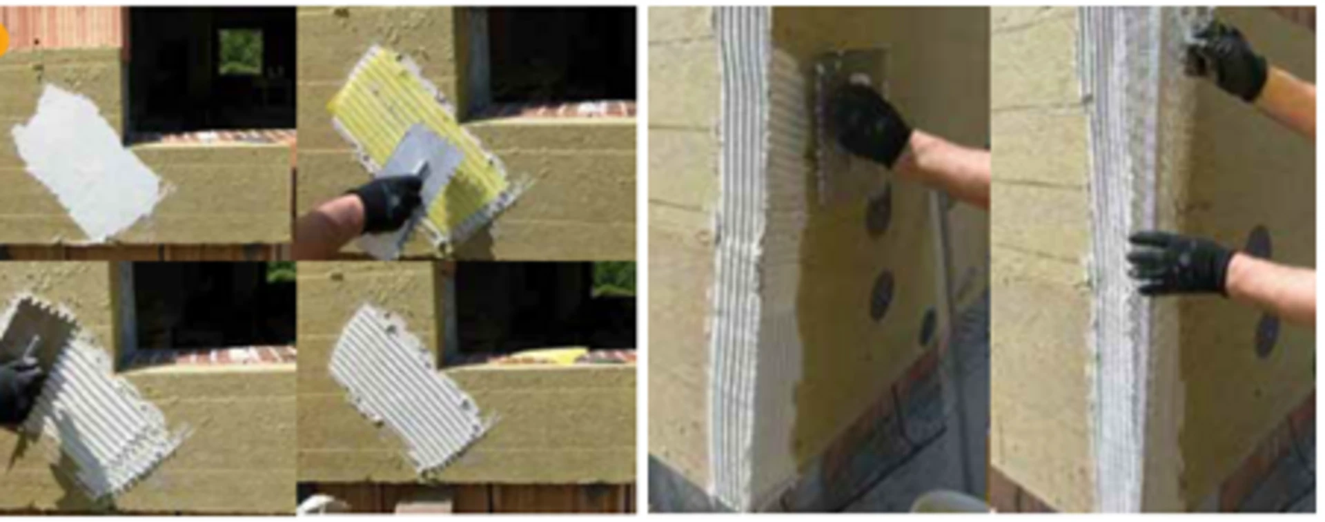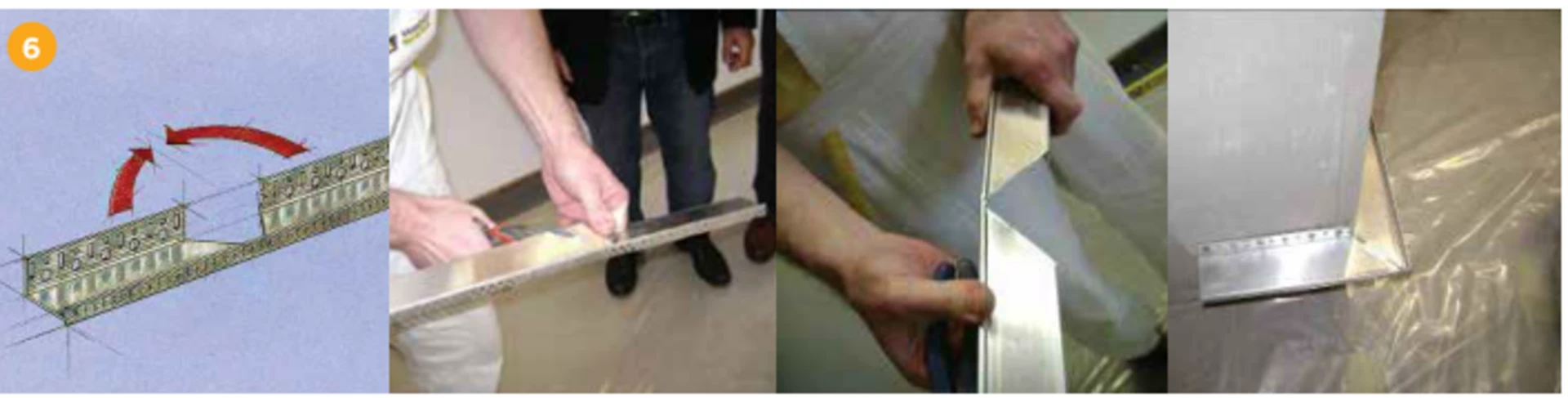 După ce ai pregătit adezivul weber R40 max2 conform indicaţiilor producătorului, armează colţurile deschiderilor de pe faţadă (uşi, ferestre, etc.) cu benzi de plasă de armare de circa 300 x 300 mm, la un unghi de 45° cu orizontala, şi colţurile verticale ale peretelui cu profile speciale cu plasă de armare. Aplică apoi un strat de masă de şpaclu pe ambele feţe ale colţului, pe o lăţime de 100 - 150 mm, după care poţi trece la încorporarea profilului.