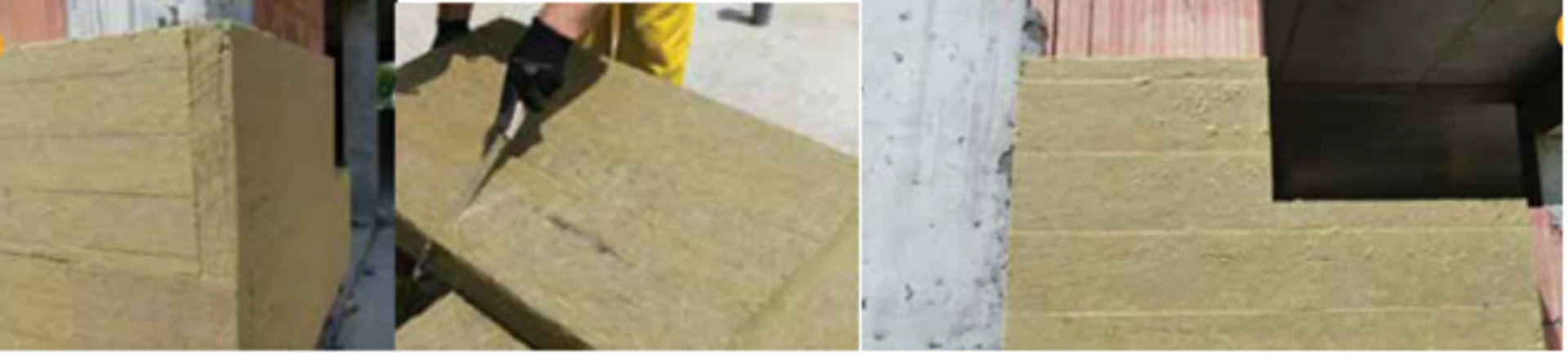 Începe montajul plăcilor de vată minerală de la profilul de bază, continuând în sus, pe peretele clădirii. În cazul plăcilor din două straturi suprapuse, îmbinările vor fi decalate vertical. După fixarea plăcilor de vată minerală pe faţadă, ajustează poziţionarea acestora prin lovire uşoară, imediat după lipire. Nu uita să verifici verticalitatea şi planeitatea suprafeţei cu ajutorul unui dreptar pe tot parcursul procesului de montare a plăcilor şi evită spaţiile goale între plăci.
