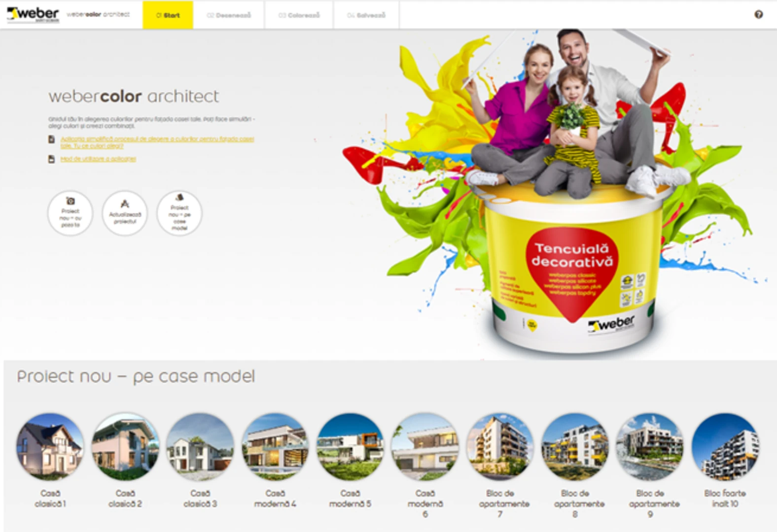 Aplicația webercolor architect este un ghid în alegerea culorilor pentru fațada casei tale. Poți face simulări, alege culori și crea combinațiile dorite.